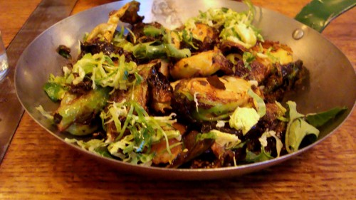 Coles de bruselas - Crispy Brussels sprouts, pork belly, mojo pica