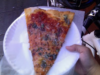 This is the slice I got post-bike ride and I would have to say it’s one of the best pizzas I’ve had, probably equal only to the pizzas you can find in Rome. According to several articles I’ve read on Di Fara’s, all ingredients are imported from Italy and you can taste immediately, from the flavorful olive oil that’s sprinkled on the pie along with cheese and fresh herbs Mr. DiMarco snips onto each slice with an old pair of kitchen shears. I’d have to say I haven’t had pizza that tasty in the US. The closest to DiFara’s would be a couple of pizzas I’ve had in Rome.
