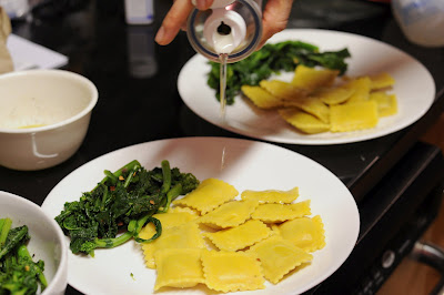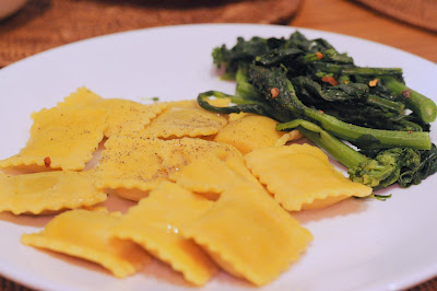 Truffled Pumpkin Ravioli, Rapini with Red Pepper Flakes