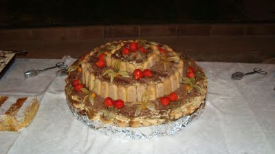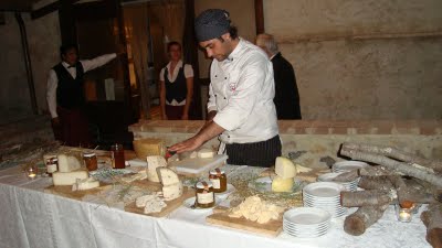 After a beautiful ceremony, we headed to the dining area of the agriturismo for some more face-stuffing. I must commend the chef (seen below at the cheese buffet) for the excellent courses and even more fabulous desserts.