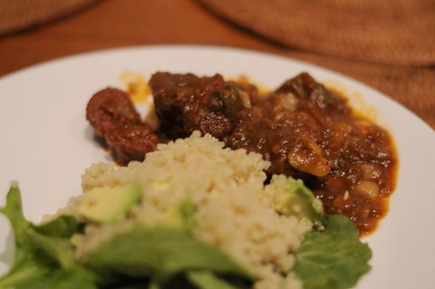 | Served over rice with a side of steamed bokchoy. Yes, those are whole cloves of garlic. |