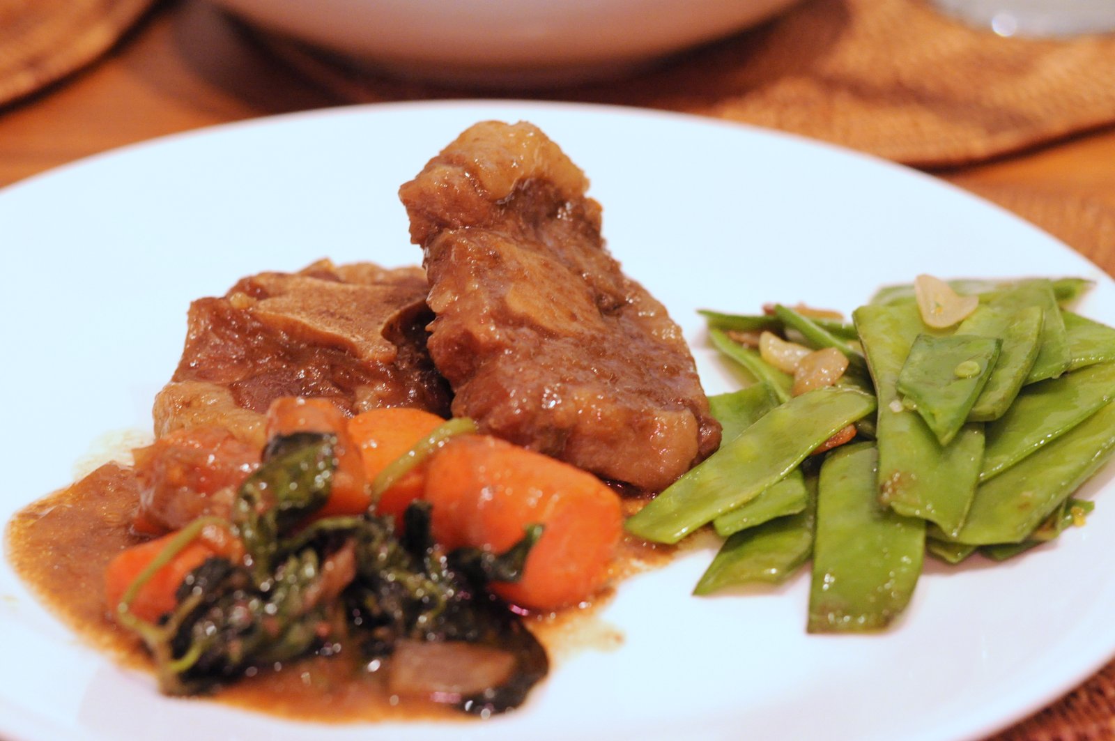 Except that I said yes when our friend Jessica told me about the adobo recipe she found in the New York Times. I wrinkled my forehead when I heard “coconut milk,” imagining Thai food or some kind of strange milky variation. I tried not to flinch when I saw shoyu (Japanese fermented soy sauce) as an ingredient. I didn’t butt in and say you can only use Filipino soy sauce! The meat of choice was short rib. It was hard to go wrong.